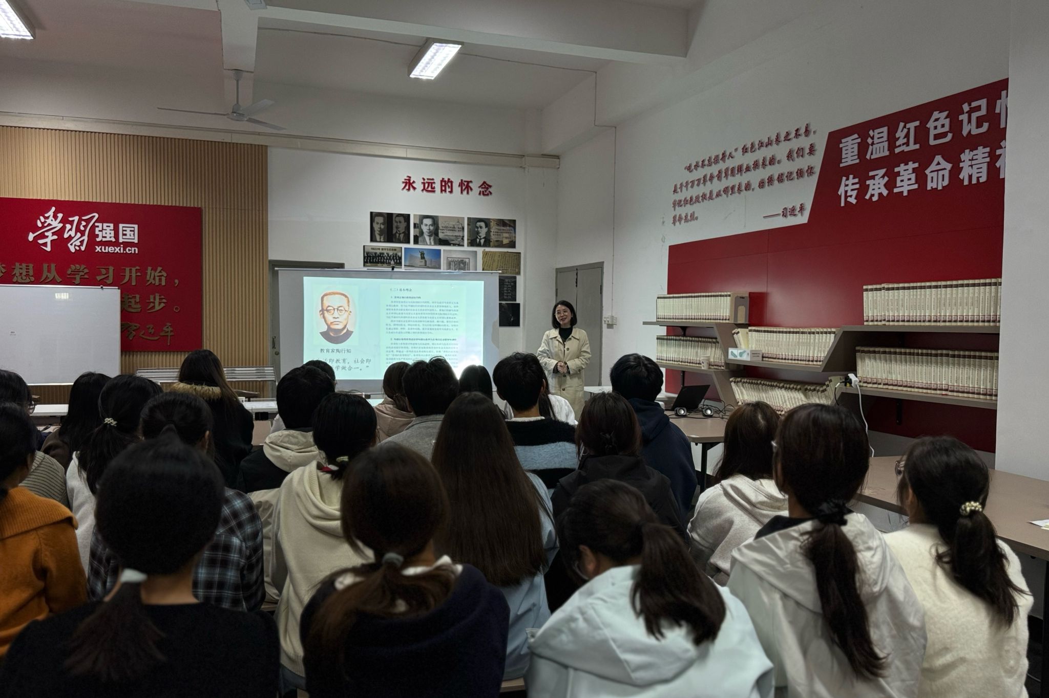 11月5日,马克思主义学院在图书馆延乔书屋举行2025级“延乔班”开班典礼。教务处处长潘锦云、学院院长严仍昱、副院长余江舟、全国优秀教师杨奇、2025级“延乔班”辅导员及“延乔班”全体学生参与,开班典礼由余江舟主持。