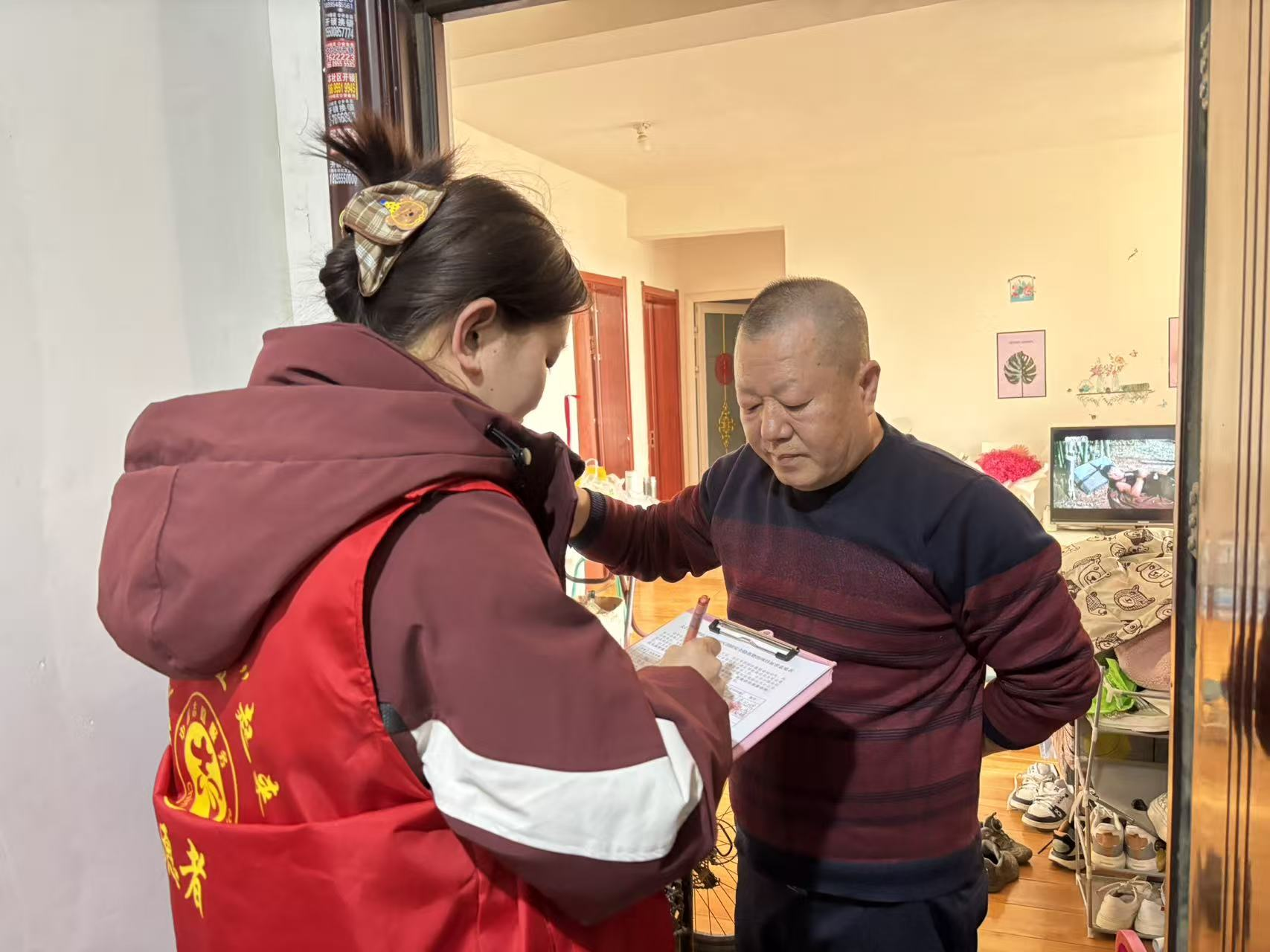 在助力社区建设的志愿服务中,她化身“基层实干者”,用点滴行动守护美丽家园。她与社区工作人员一起走上街头、走进小区捡拾垃圾,弯腰拾起路边的塑料瓶、纸屑,清理角落的卫生死角,让社区环境焕然一新;参与楼道安全隐患排查工作,逐层检查楼道内的消防设施、清理堵塞消防通道的杂物、排查私拉乱接的电线,用细致守护居民安全;协助开展入户调查,挨家挨户收集居民对扩建消防通道、增设停车位的意见,让社区治理贴近居民心声;临近春节,她还与其他志愿者一起策划了写春联、剪窗花的邻里活动,红纸墨香里,居民们围坐在一起说笑,原本陌生的邻里变得熟络,让社区大家庭的温情在寒冬里愈发浓厚。“我不仅用自己的力量为家乡做了一点小事,更在这个过程中懂得了奉献的价值,体会到基层工作者的不易。”张银表示。