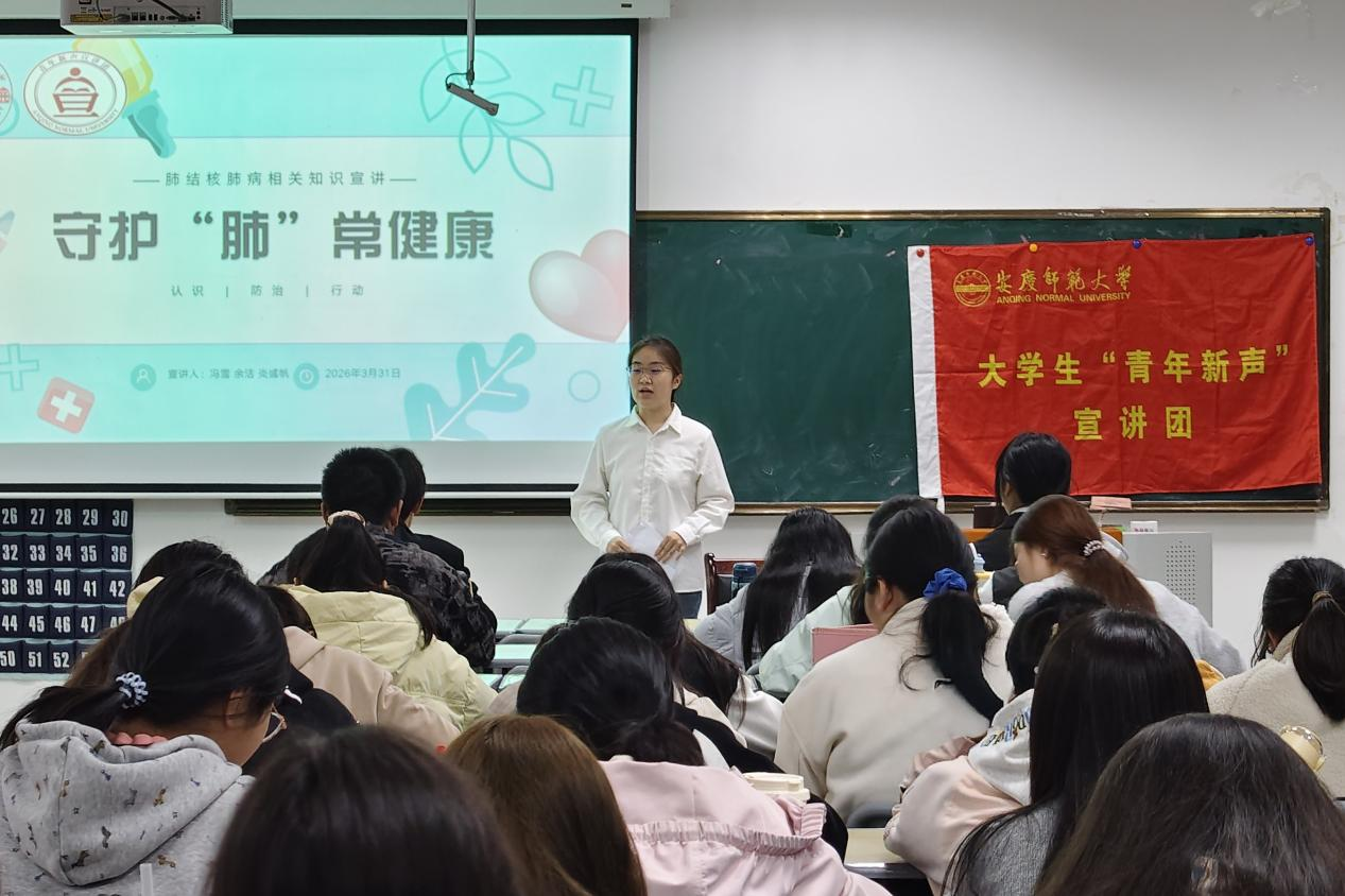 3月31日,大学生“青年新声”宣讲团在Q楼308教室开展“防治肺结核”主题宣讲活动,马克思主义学院各年级同学积极参与。
