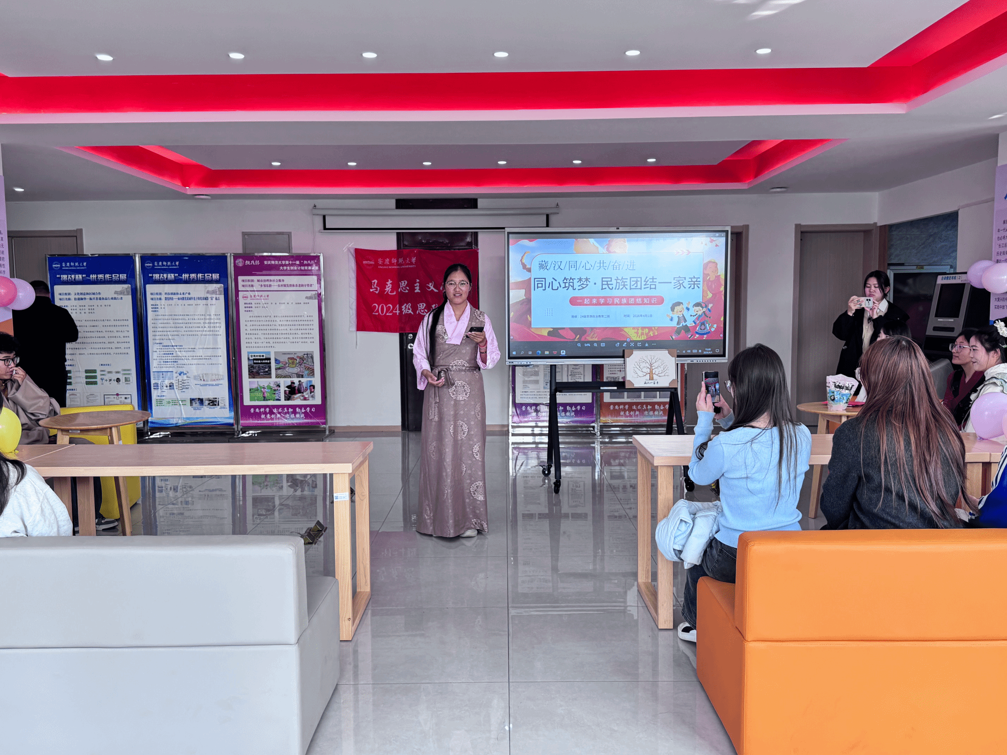 4月1日,马克思主义学院思想政治教育专业2024级2班在“一站式”学生社区10号楼二楼大厅开展“同心筑梦促团结 藏汉同心共奋进”藏汉联谊活动,班级辅导员田梦甜与全体同学共同参与。